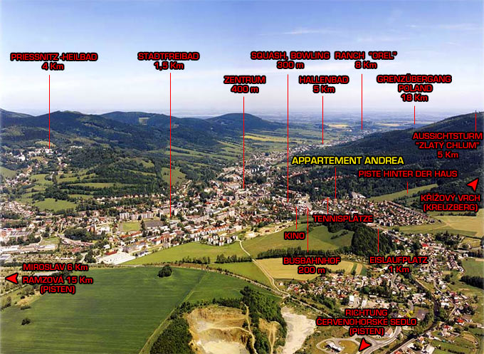 Die Pension Andrea finden Sie ungefähr 800 m vom Stadtzentrum von Jeseník (Freiwaldau) und 200 m vom